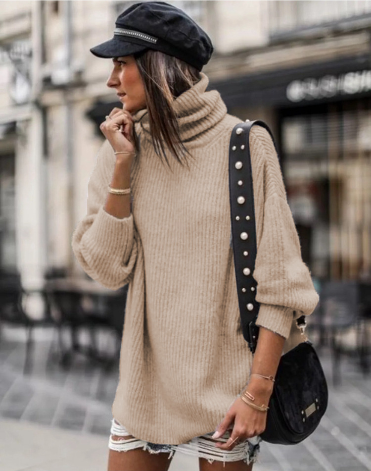 Mid-length women’s pullover sweater dress with European and American styling, perfect for versatile casual and chic wear.