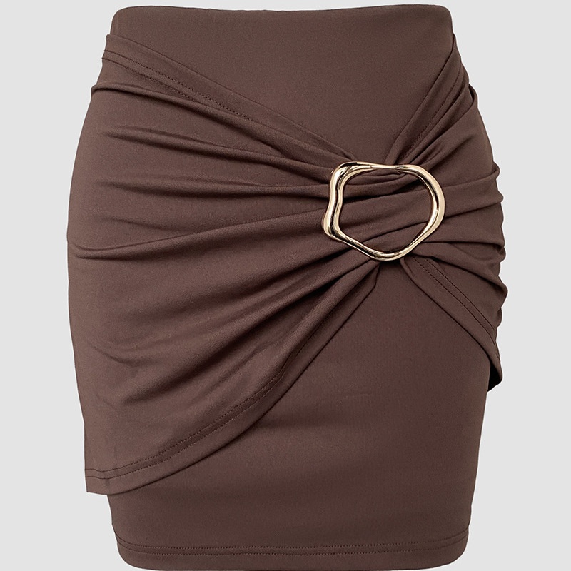 Stylish European and American pleated culottes shorts featuring solid colors and elegant jewelry clasp patchwork design.