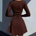 This women’s dress features a solid-color design inspired by European and American styles. The high-waisted silhouette emphasizes the waist, enhanced with an adjustable back-tie detail to ensure a tailored fit. The A-line skirt provides a comfortable yet elegant drape, flattering various body types. Crafted with attention to detail, this dress offers a refined and versatile option suitable for a range of occasions, merging classic aesthetics with contemporary fashion.