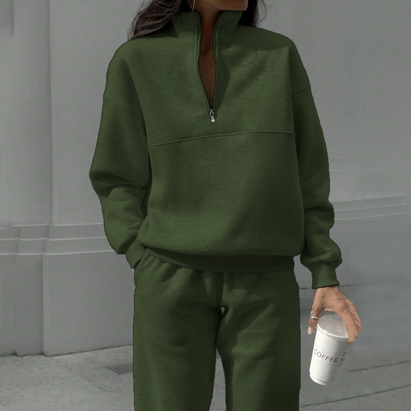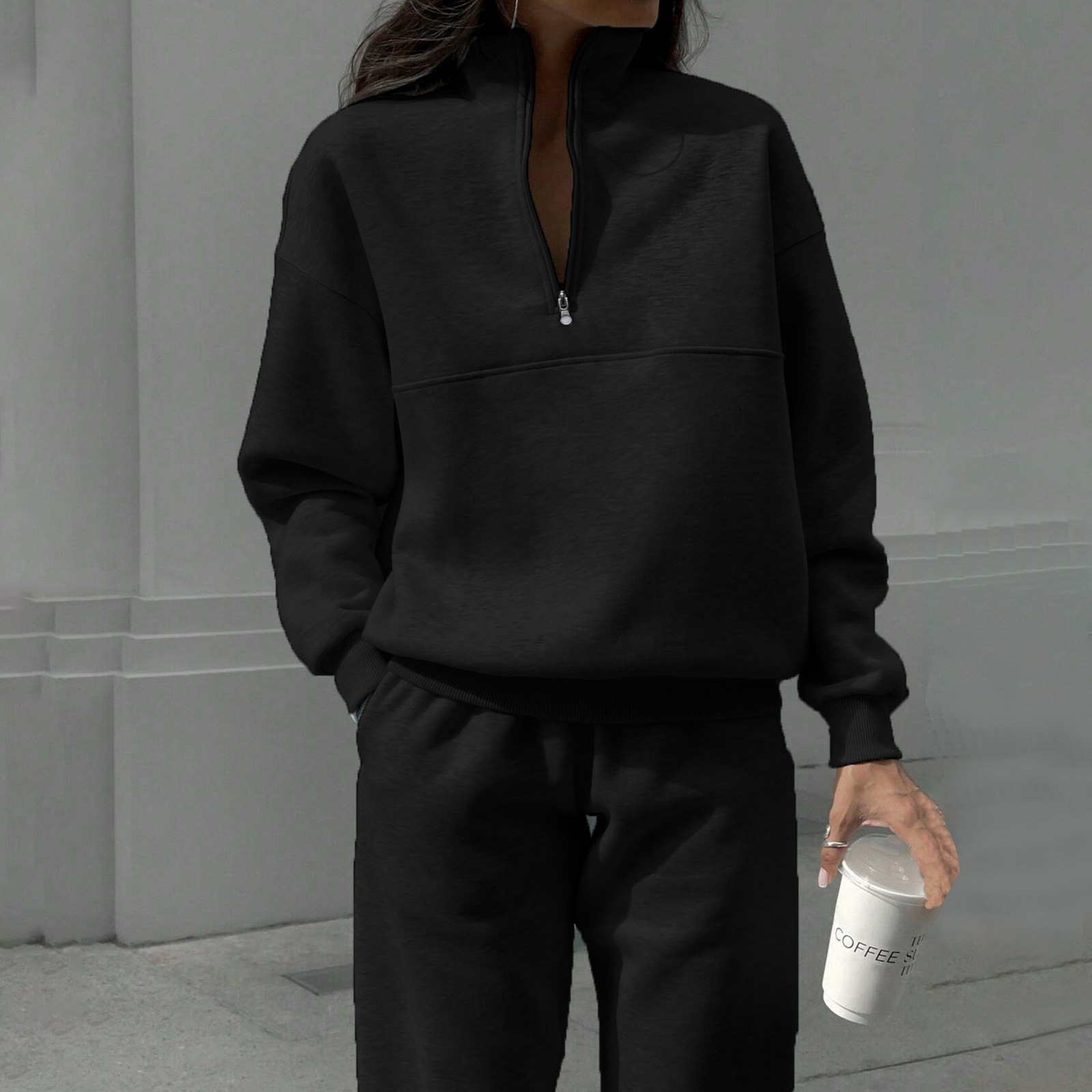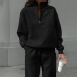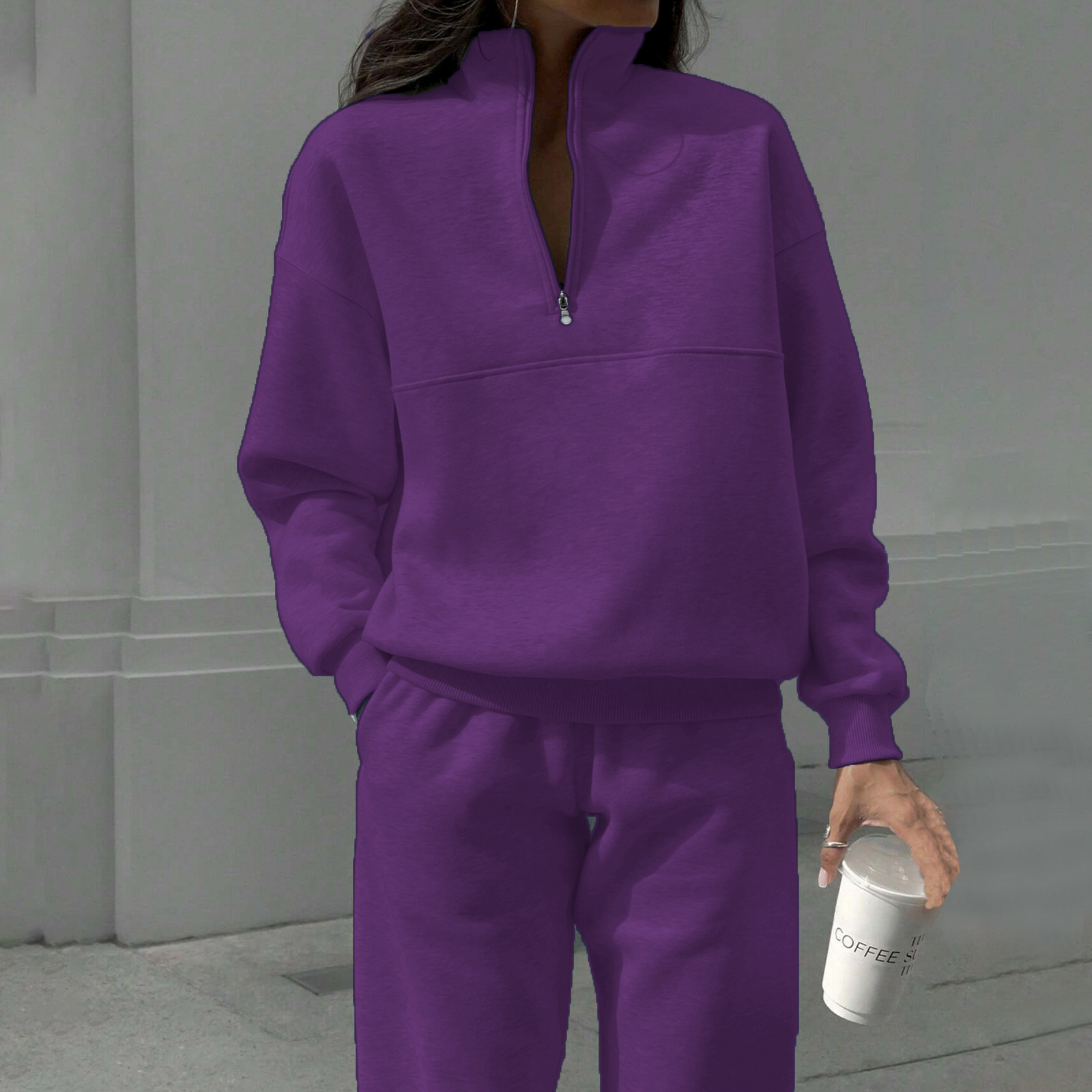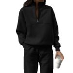 Stylish European and American women’s hooded fleece casual sports set combining comfort and fashion for daily wear.