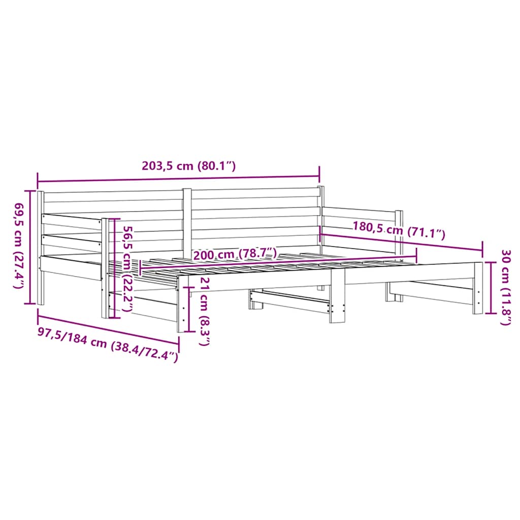 Durable extendable daybed made from solid pine wood, perfect for versatile seating and sleeping options in your living space.