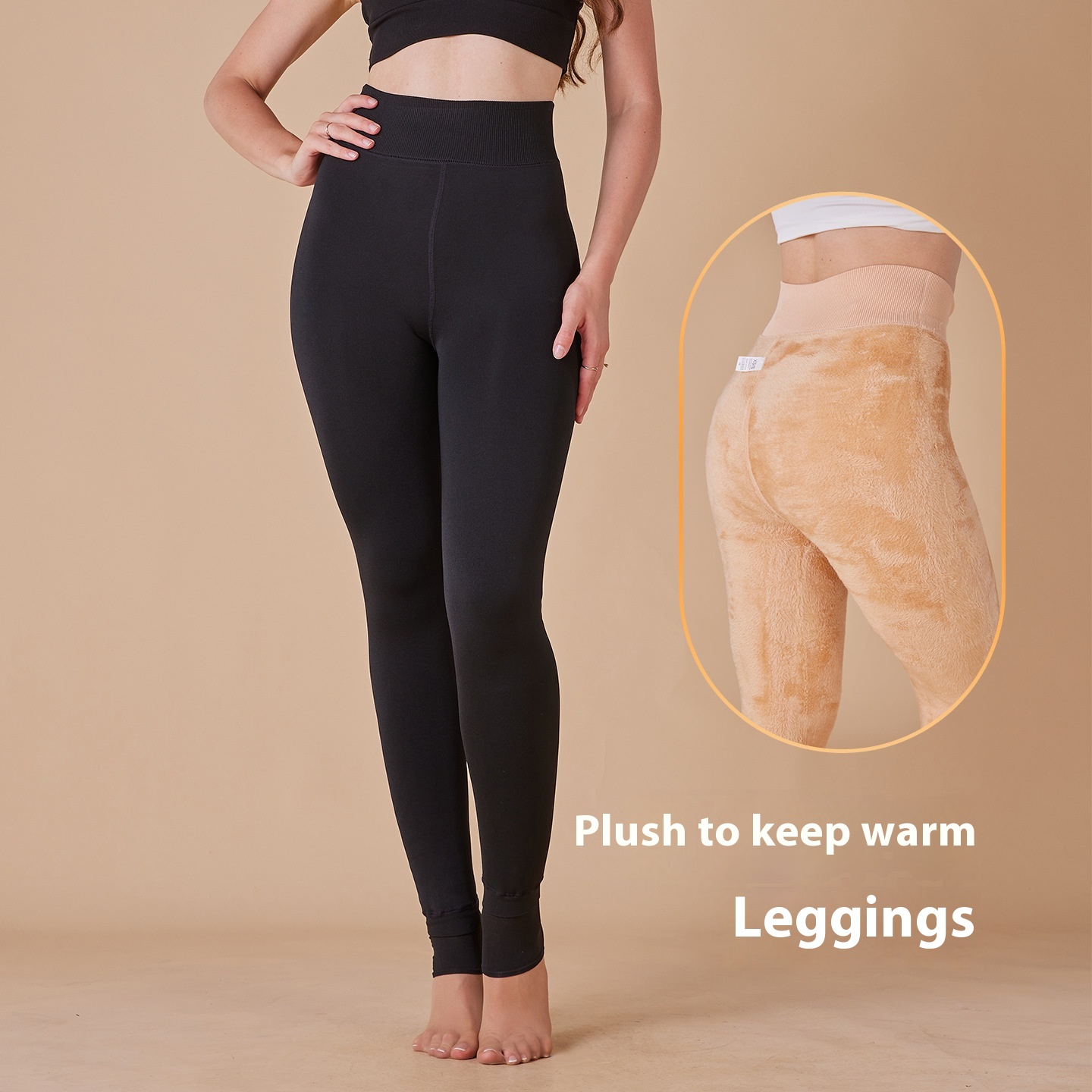 Extra large, fur-lined, thick leggings with solid color design. Ideal for warmth and style in cold weather outerwear.
