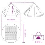 The family teepee tent is a spacious and stylish retreat for camping enthusiasts. Made from smooth polyester fabric, it offers a great balance of looks and functionality, with a cool, modern look that blends perfectly into the outdoors. These features make it easy to handle and transport. Enjoy the airy interior for relaxing or use it as a base for exploring. Its contemporary design complements both classic and trendy campsites. Just take care: handle the zippers with care and keep the tent pegs dry to ensure its longevity. Caution: Keep all flames and heat sources away from this product’s fabric.