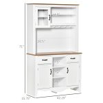 71″ farmhouse kitchen buffet with hutch offers ample storage and rustic charm to enhance your dining space.