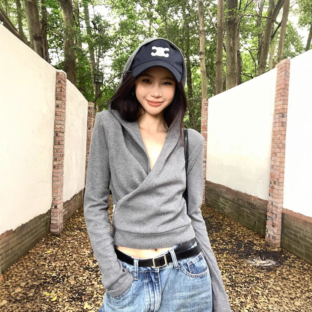 Stylish women’s long sleeve hooded T-shirt featuring a trendy cross design for comfortable everyday wear.