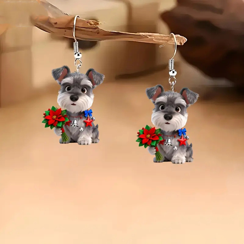 Stylish flat cartoon Schnauzer dog earrings featuring a unique design, perfect for dog lovers and casual wear.