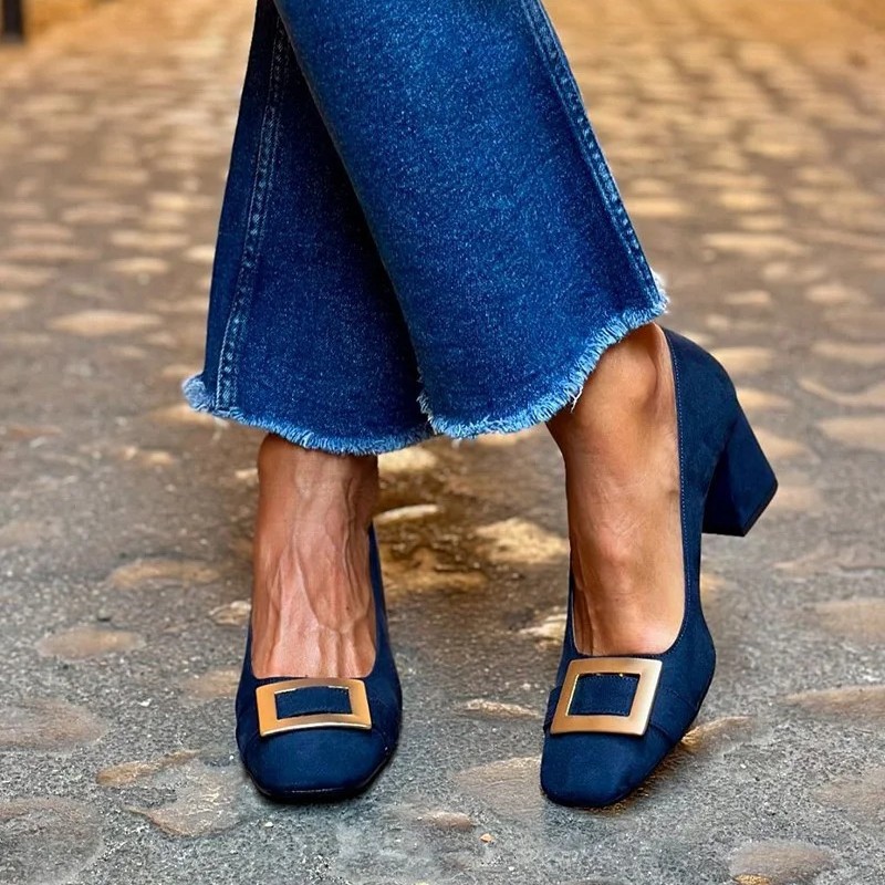 These women’s pumps combine a fashionable high heel with soft suede material, highlighted by a distinctive square buckle detail. The shallow mouth design offers a refined and elegant appearance, ensuring both style and comfort for various occasions. The premium suede construction enhances durability while maintaining a smooth texture, making these pumps suitable for formal events or daily wear. Their sophisticated silhouette complements a wide range of outfits, providing a blend of classic charm and modern design.