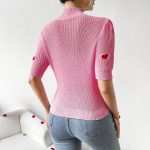 Stylish women’s high-neck knit top with heart design and short sleeves, offering comfort and trendy appeal for casual wear.