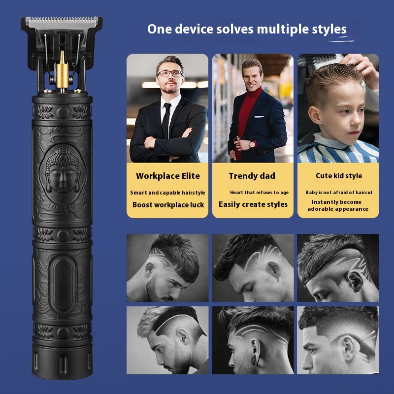 This electric hair clipper combines a fashionable, unique exterior with advanced cutting technology. Crafted for precision trimming, it offers sharp, durable blades to ensure smooth and efficient haircuts. The ergonomic design provides a comfortable grip for easy handling during use. Suitable for personal grooming, it supports adjustable settings to accommodate various hair lengths and styles. Its durable construction ensures long-lasting performance, making it a reliable tool for both beginners and experienced users.