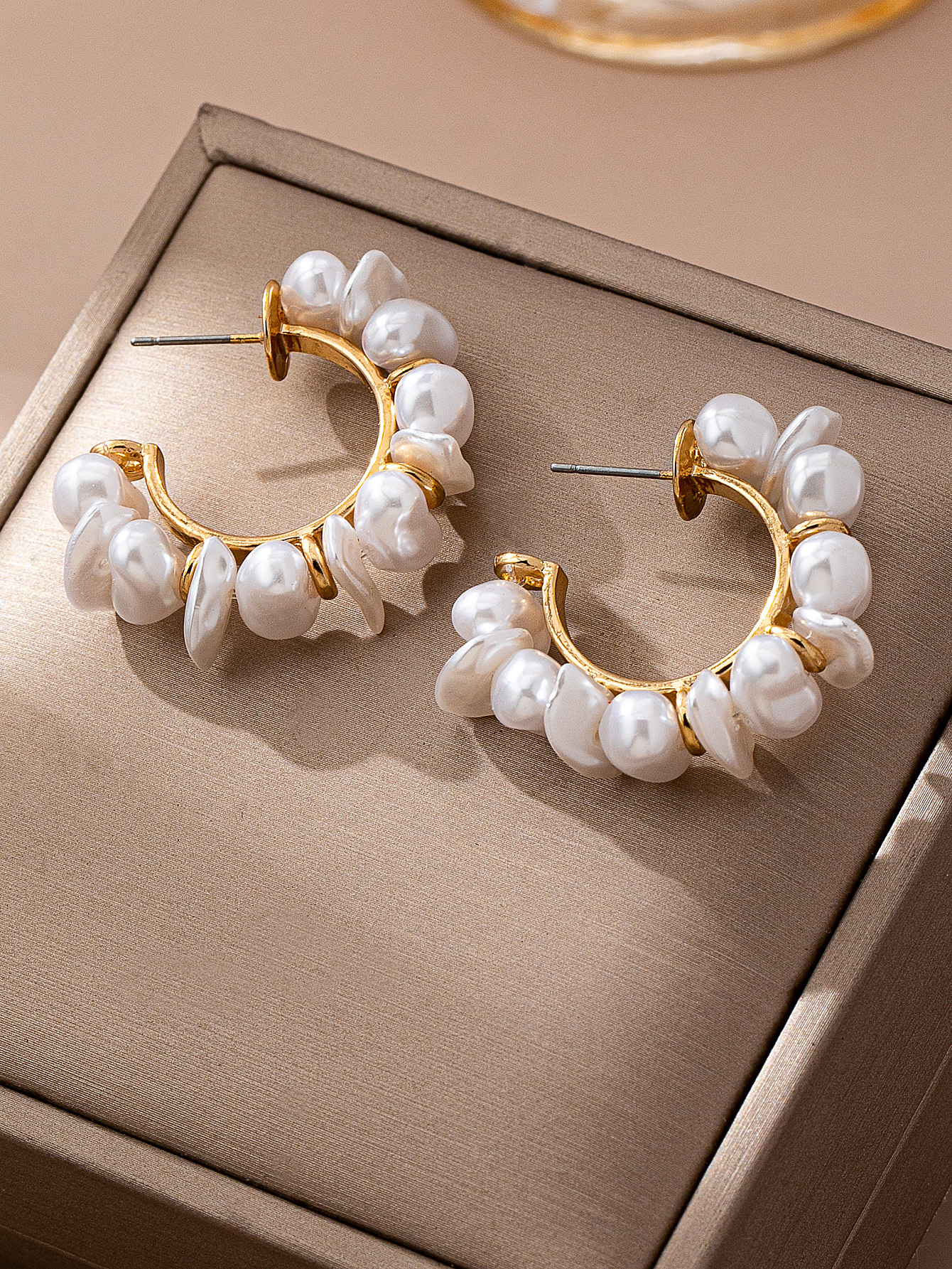 Stylish irregular C-shape pearl earrings offering a modern twist on classic elegance suitable for all occasions.