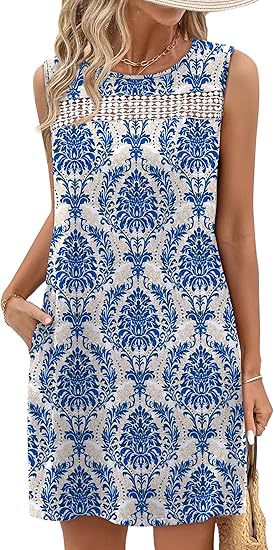 Elegant printed dress featuring lace trim and patchwork detailing for a fashionable look.