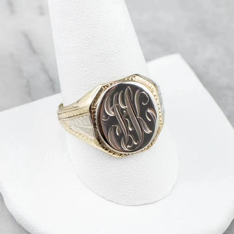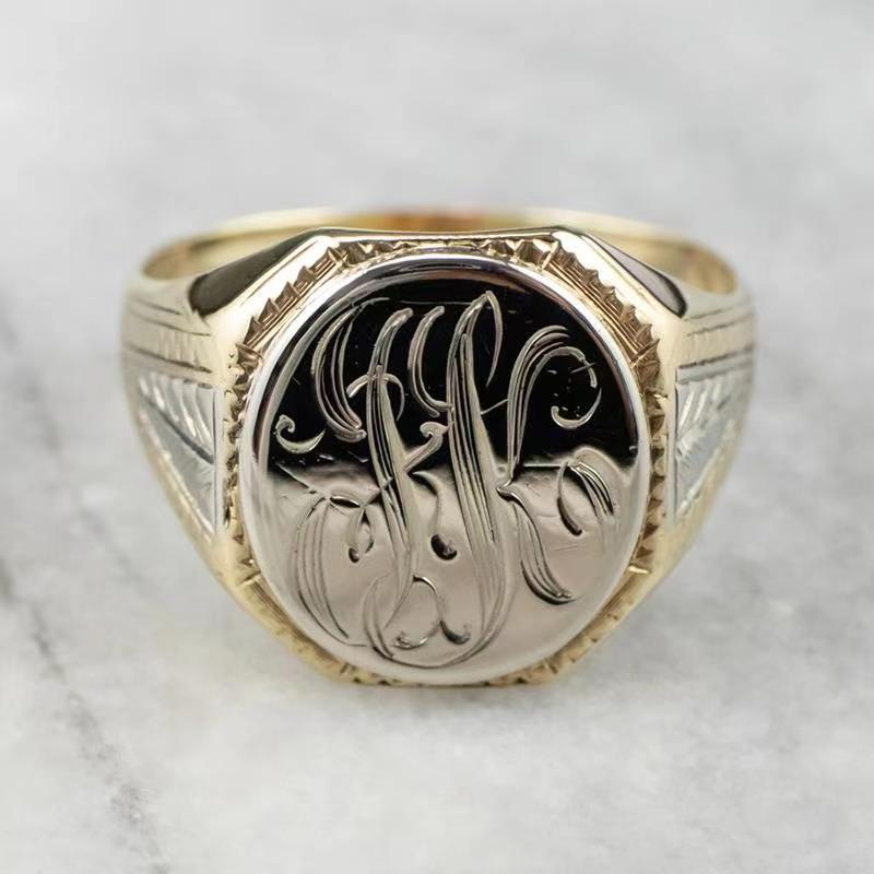 Elegant vintage-inspired carved letter ring for women, featuring detailed craftsmanship and timeless design.
