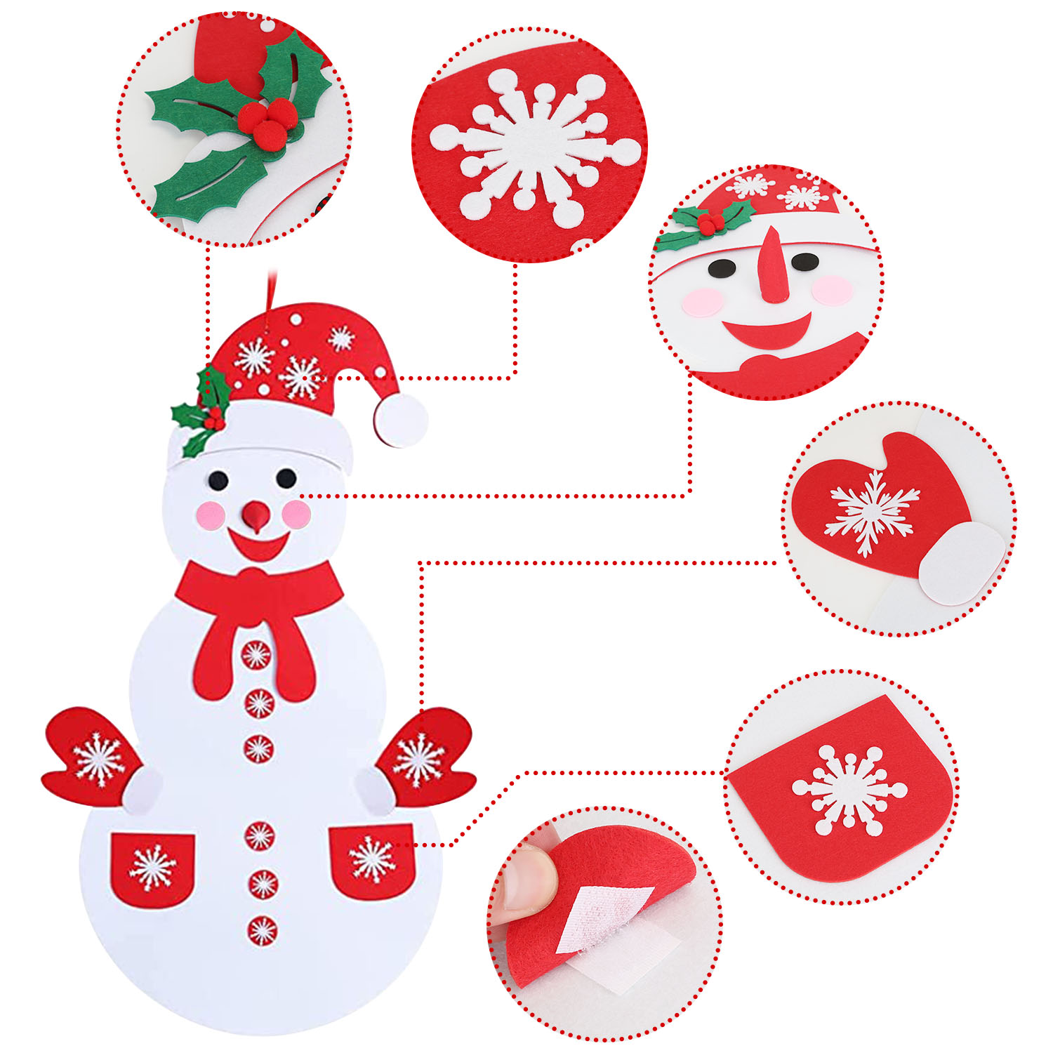 DIY felt Christmas snowman set with 54 detachable ornaments, ideal for festive hanging decorations and Xmas gifts for toddlers.