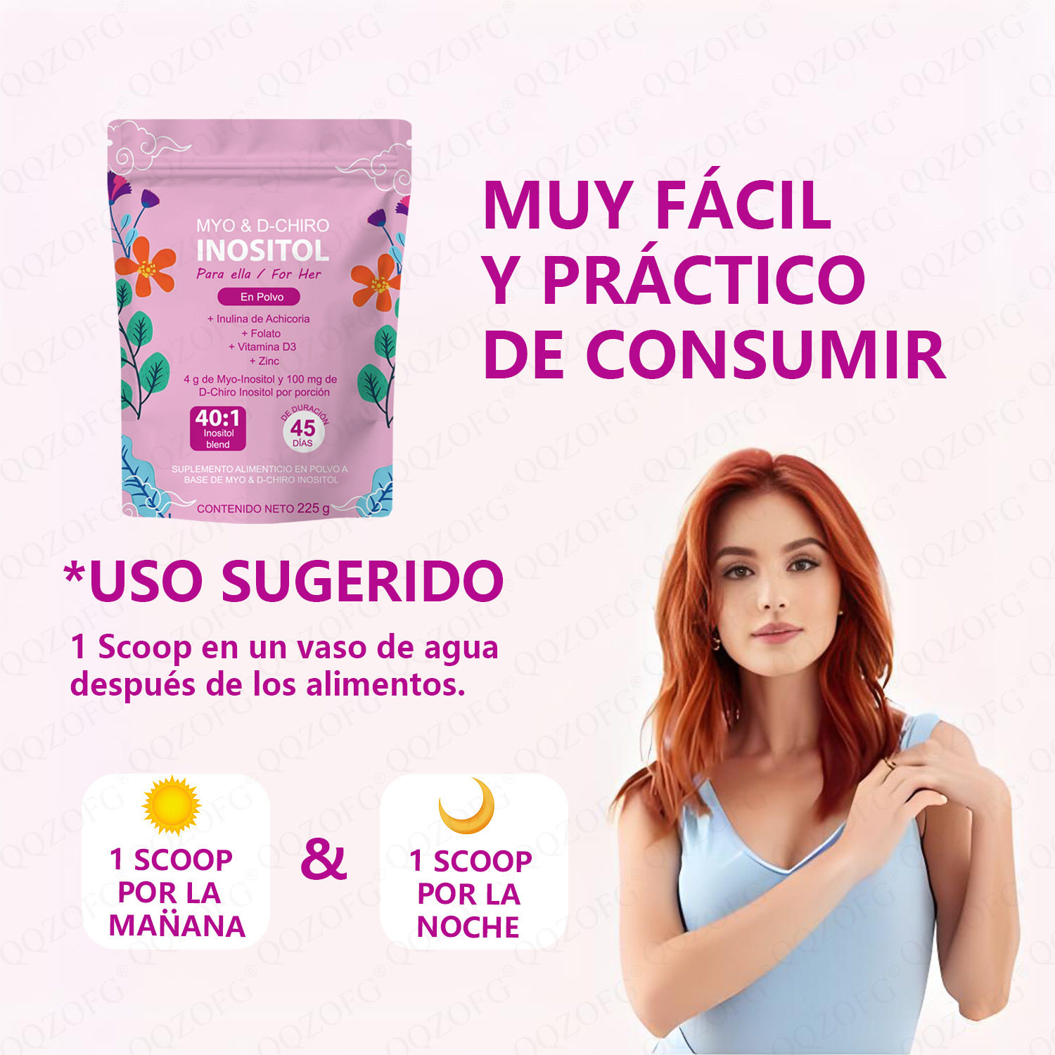 This Female Inositol Powder, presented in a 225g package, is designed to support women’s hormonal regulation and overall well-being. Inositol is a naturally occurring compound that plays a vital role in cellular signaling and metabolic functions. The powder form allows for easy integration into daily routines, promoting hormonal harmony and reproductive health. This product is ideal for those seeking a natural supplement to support female physiological processes and enhance wellness. It is carefully processed to ensure purity and efficacy, suitable for regular consumption as part of a balanced health regimen.