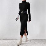 Be the first to review “Female Solid Color High Neck Semi-high Neck Black Knitted Dress” Cancel reply