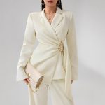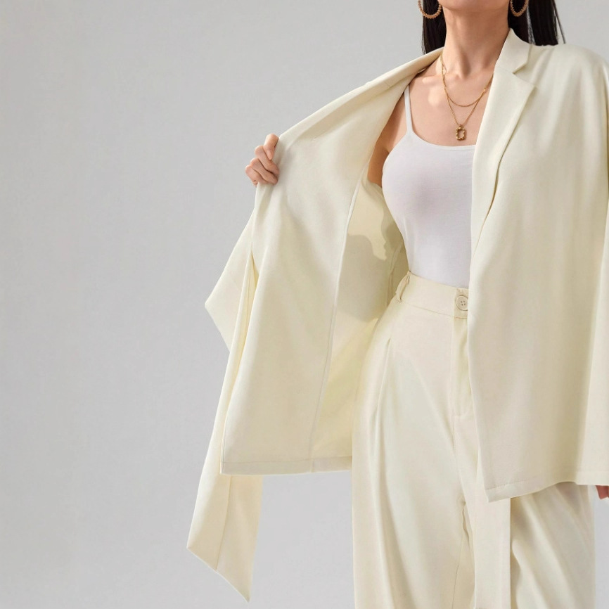 Sophisticated female temperament suit featuring stylish lace-up design, perfect for modern fashion and professional settings.