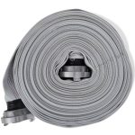 Durable 20m flat fire hose equipped with C-Storz 2 couplings for reliable firefighting and water delivery applications.