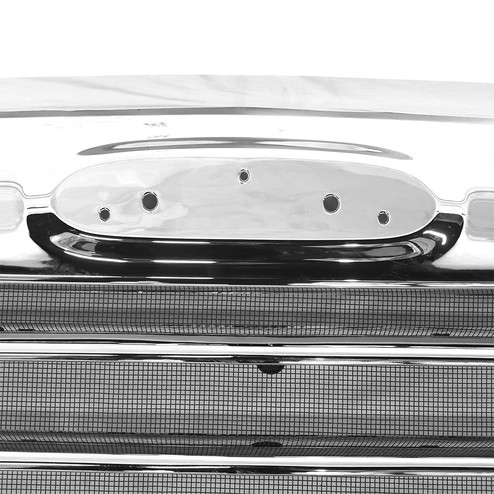 This chrome grille with an integrated bug screen is specifically engineered for Freightliner Columbia trucks manufactured between 2000 and 2008. Constructed from high-quality materials, it offers robust protection against insects and road debris while enhancing the vehicle’s exterior appearance with a polished finish. Designed for a precise fit, this grille ensures easy installation and long-lasting durability, making it an ideal replacement or upgrade component for maintaining optimal airflow and vehicle aesthetics.