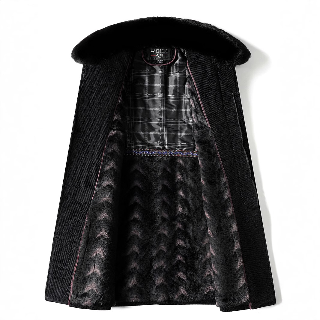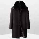 Warm fleece-lined long wool coat designed for middle-aged and elderly men, combining comfort and style for cold weather.