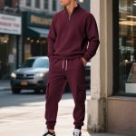 Stay warm and comfortable with this fleece-lined thermal zip-up men’s athletic pants set designed for active wear and cold weather.