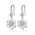 Sophisticated white copper flower earrings for women, featuring a long design that enhances elegance, available for wholesale.