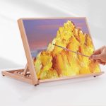 Compact, foldable desktop drawing stand with adjustable angles, perfect for artists and designers seeking ergonomic workspace solutions.