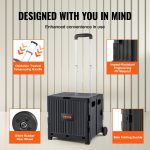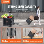 This foldable utility cart offers a sturdy design capable of supporting up to 80 pounds of weight. Equipped with a durable heavy-duty telescoping handle and two robust wheels, it facilitates smooth transport and easy maneuverability. The compact, foldable construction allows convenient storage and portability, making it an ideal solution for traveling, shopping, moving, and office tasks. The black finish provides a professional appearance suitable for various environments and uses.
