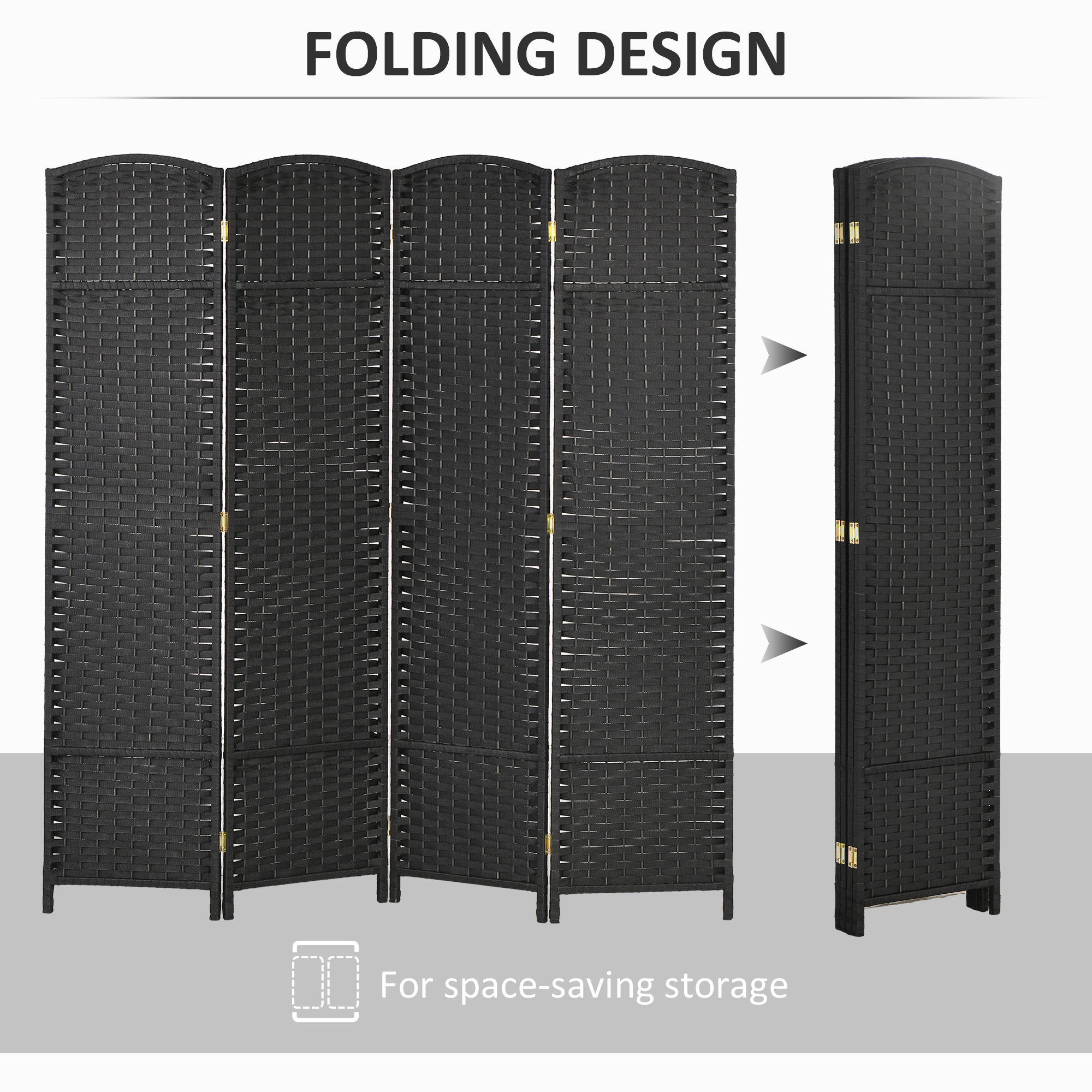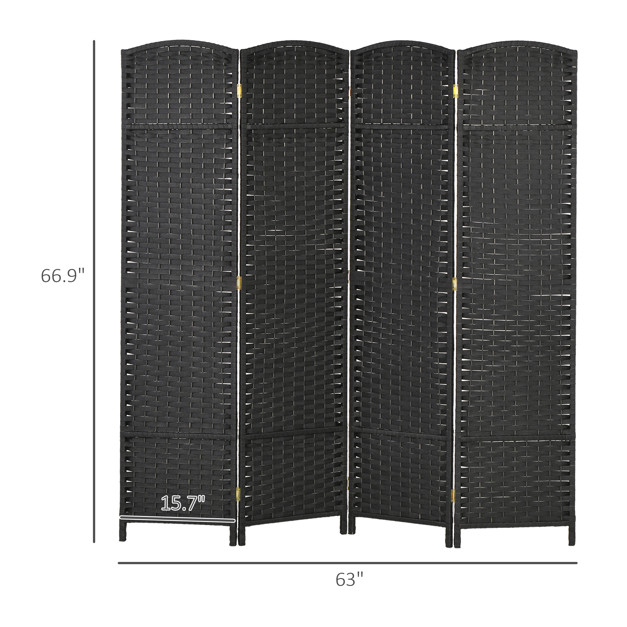 Black 4-panel folding room divider screen, 5.6 feet tall, freestanding privacy partition ideal for home and office spaces.
