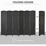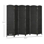 This 6-panel folding room divider stands 5.6 feet tall, providing an effective freestanding privacy partition suitable for home or office use. Crafted with durable materials and finished in a sophisticated black color, the screen offers flexibility in space management. Its lightweight and foldable design ensures easy portability and convenient storage, making it an ideal solution for separating areas, enhancing privacy, or creating designated zones within any room.