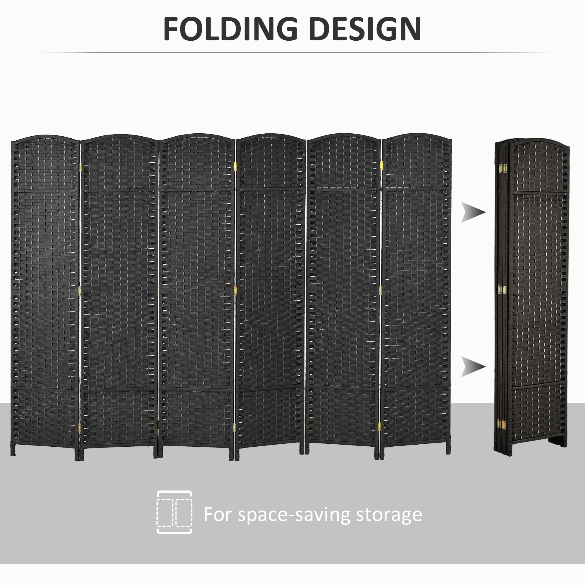 Freestanding 6-panel folding room divider, 5.6 feet tall, ideal for privacy in home or office spaces with a sleek black finish.
