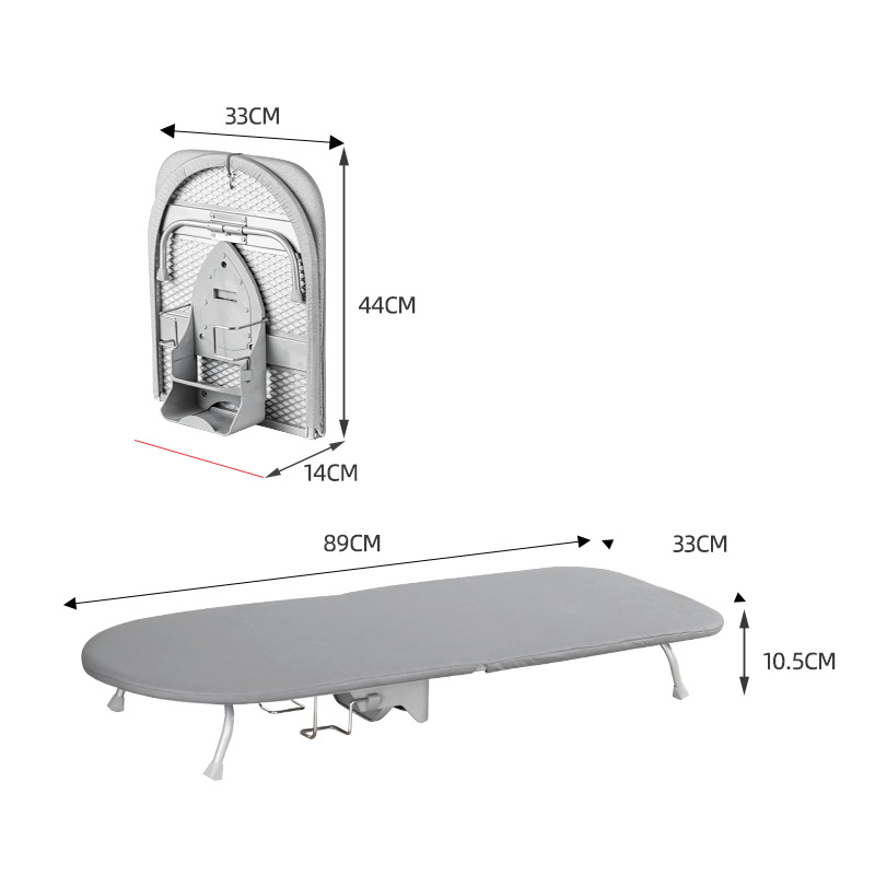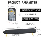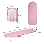 Compact folding ironing board with integrated storage rack, ideal for efficient household laundry tasks and space-saving convenience.