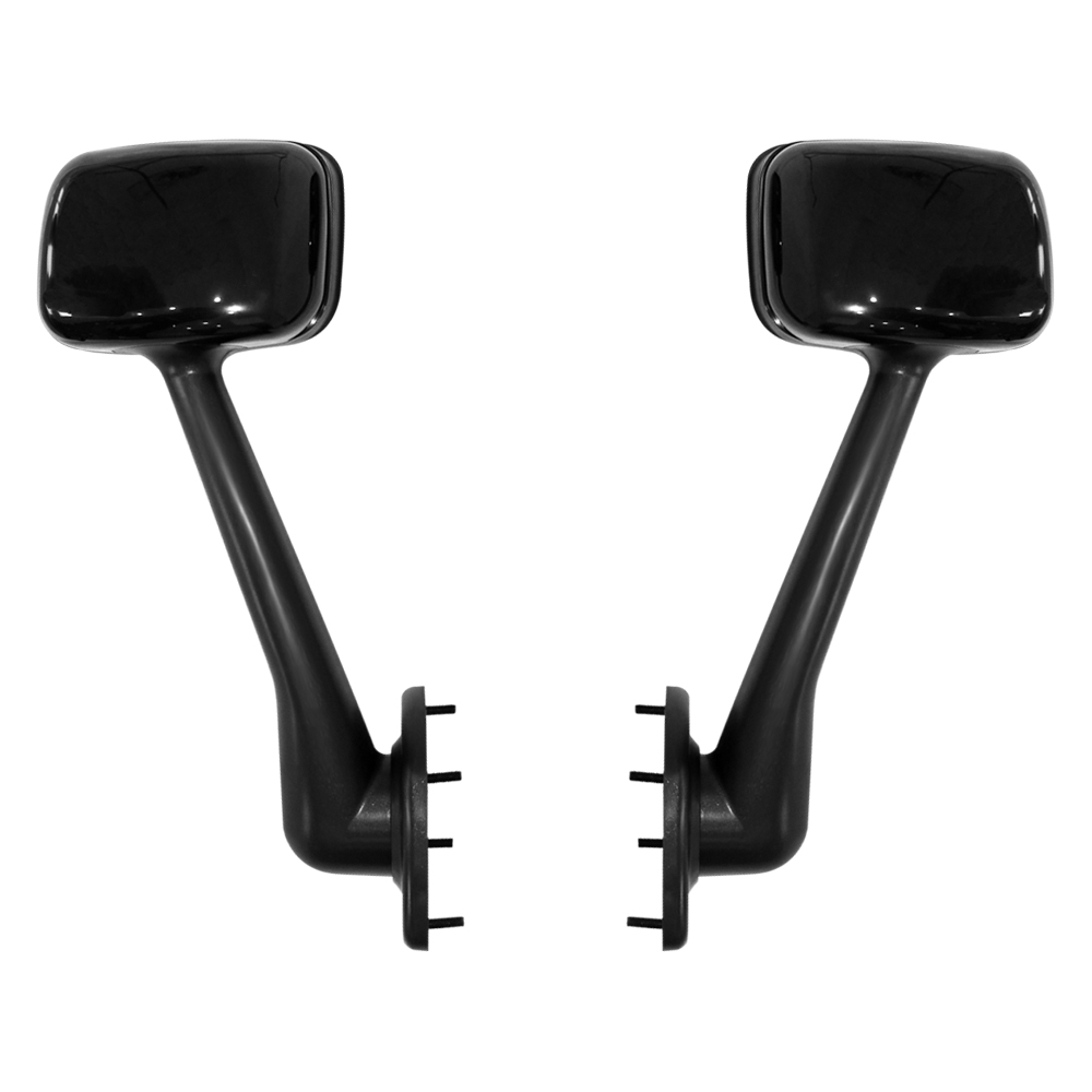 Set of black hood mirrors for 2008-2016 Freightliner Cascadia, featuring durable construction and precise fit for left and right sides.