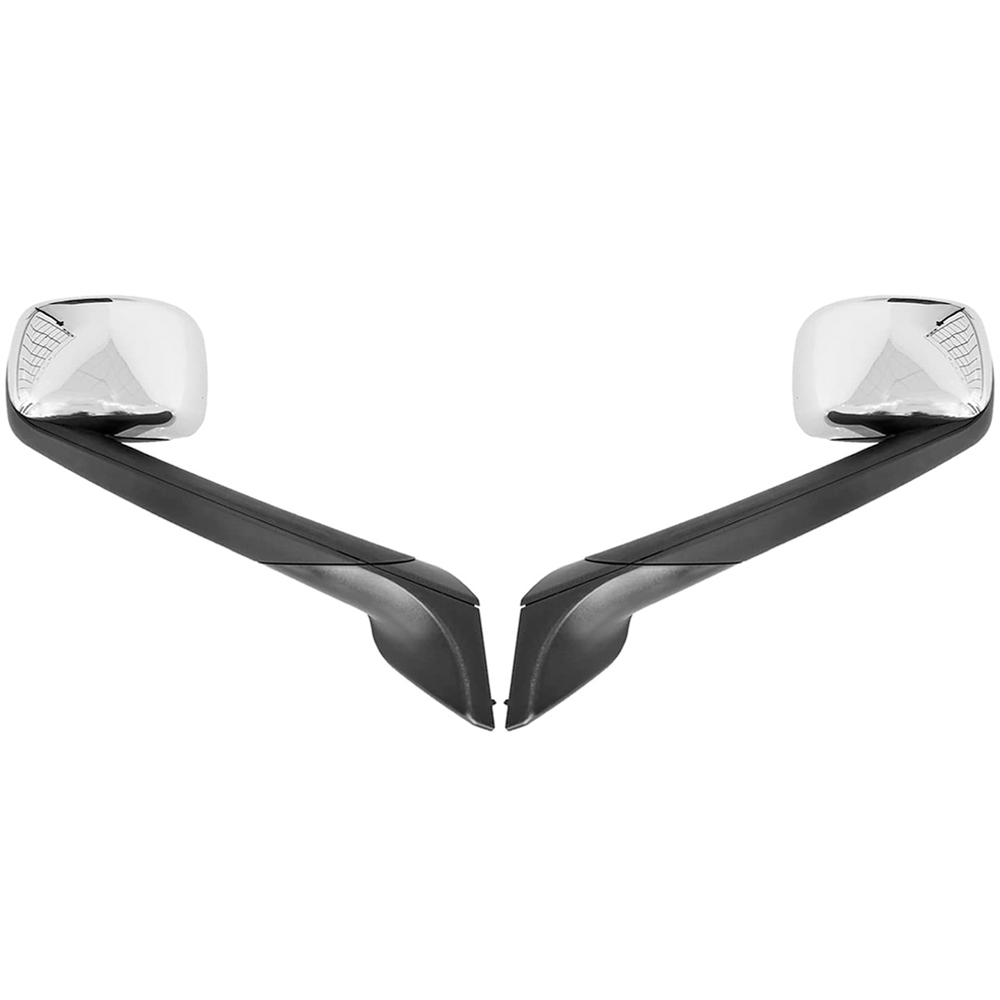 Chrome heated hood mirrors with LED turn signals for Freightliner Cascadia 2018, enhancing visibility and safety in all weather conditions.