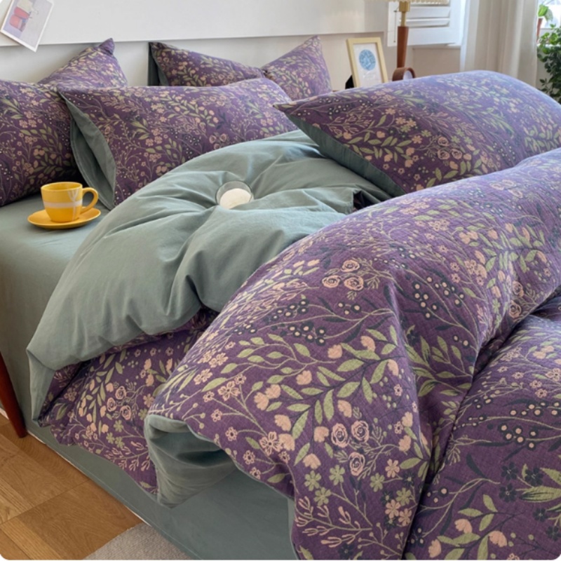 Soft and breathable four-piece cotton bedding set with double-layer design for enhanced comfort and durability.