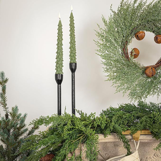 Elegant fragrance-free tree-shaped tapered candle perfect for Christmas decoration and creating a festive atmosphere.