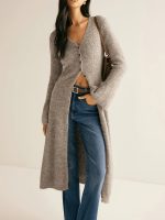 Sophisticated French-style long sleeve coat cardigan blending retro charm with modern elegance for versatile wear.