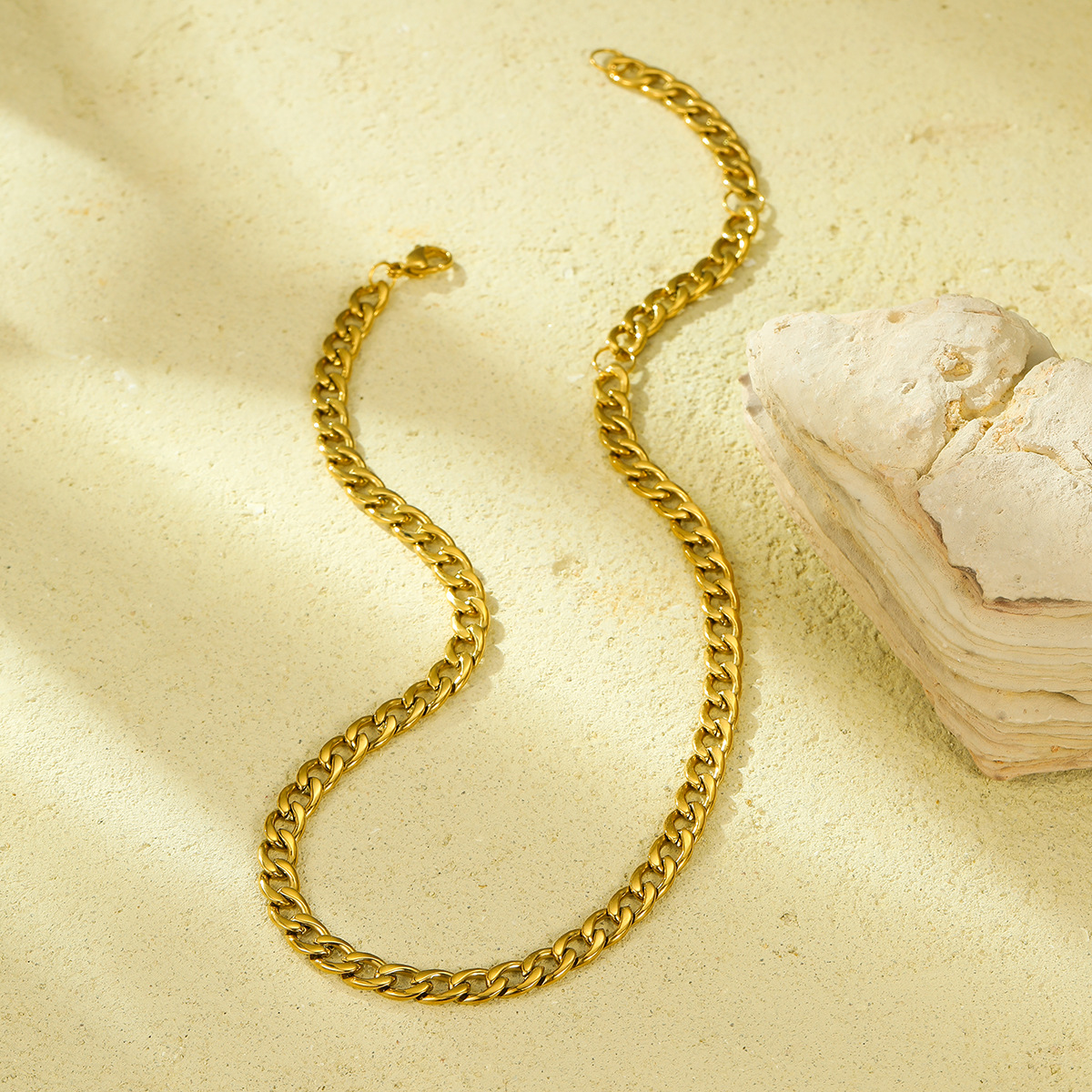 Elegant French-style clavicle chain crafted from high-grade titanium steel with gold plating that resists fading for lasting wear.