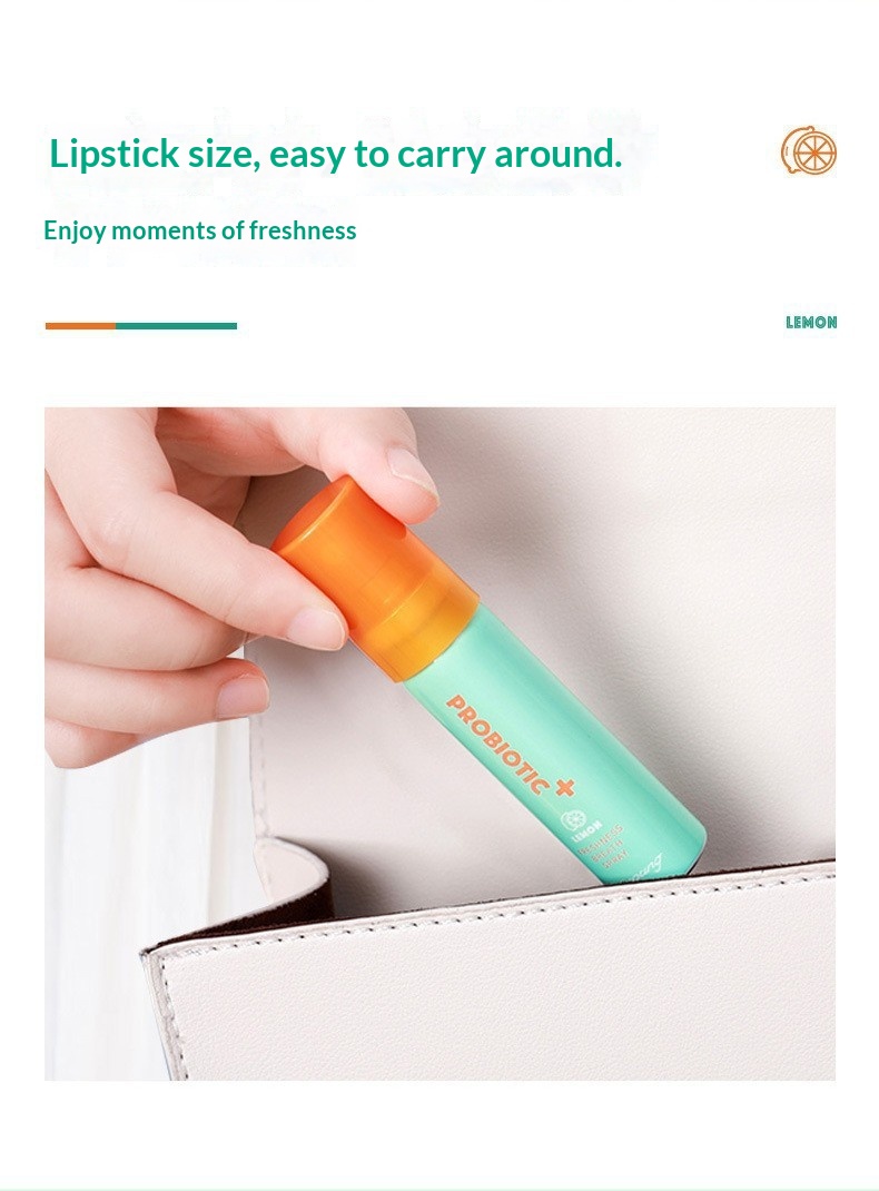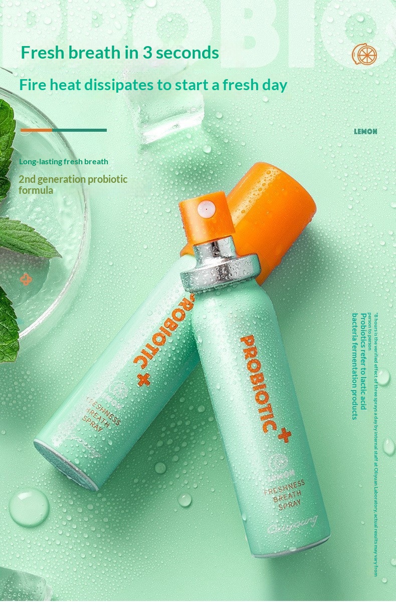 Probiotic oral spray offering fresh breath and oral care with convenient, effective probiotics in a spray form.