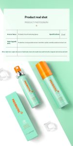 Probiotic oral spray offering fresh breath and oral care with convenient, effective probiotics in a spray form.