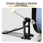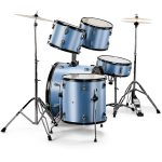 Full Size Adult Drum Set 5-Piece Blue including a 22″ x 16″ bass drum, 16″ x 16″ floor tom, 13″ x 11″ and 12″ x 10″ tom drum, 14″ x 5.5″ snare drum, 14″ hi-hat cymbals, 16″ crash/ride cymbal, all stands, stool, drumsticks, hardware, chain-driven pedals, and drum adjustment key. Perfect for all adult musicians, beginner to advanced, this full-size set provides everything needed for playing and perfecting practice. This drum kit is updated with a double-layer oil drum skin.So our drum has higher hardness and toughness than the single-layer oil skin drum of market. It is more resistant to puncture, more resistant to friction, can withstand high temperature and low temperature.