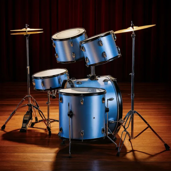 This full size 5-piece adult drum set features a vibrant blue finish and includes a bass drum, two tom drums, a snare drum, and a floor tom, offering a comprehensive percussion setup. The package is equipped with a comfortable drum stool, a drum pedal, and a pair of drumsticks, providing all essential components to start playing immediately. Designed for durability and optimal sound quality, this drum set is suitable for beginners and experienced drummers alike seeking a reliable and visually appealing kit.