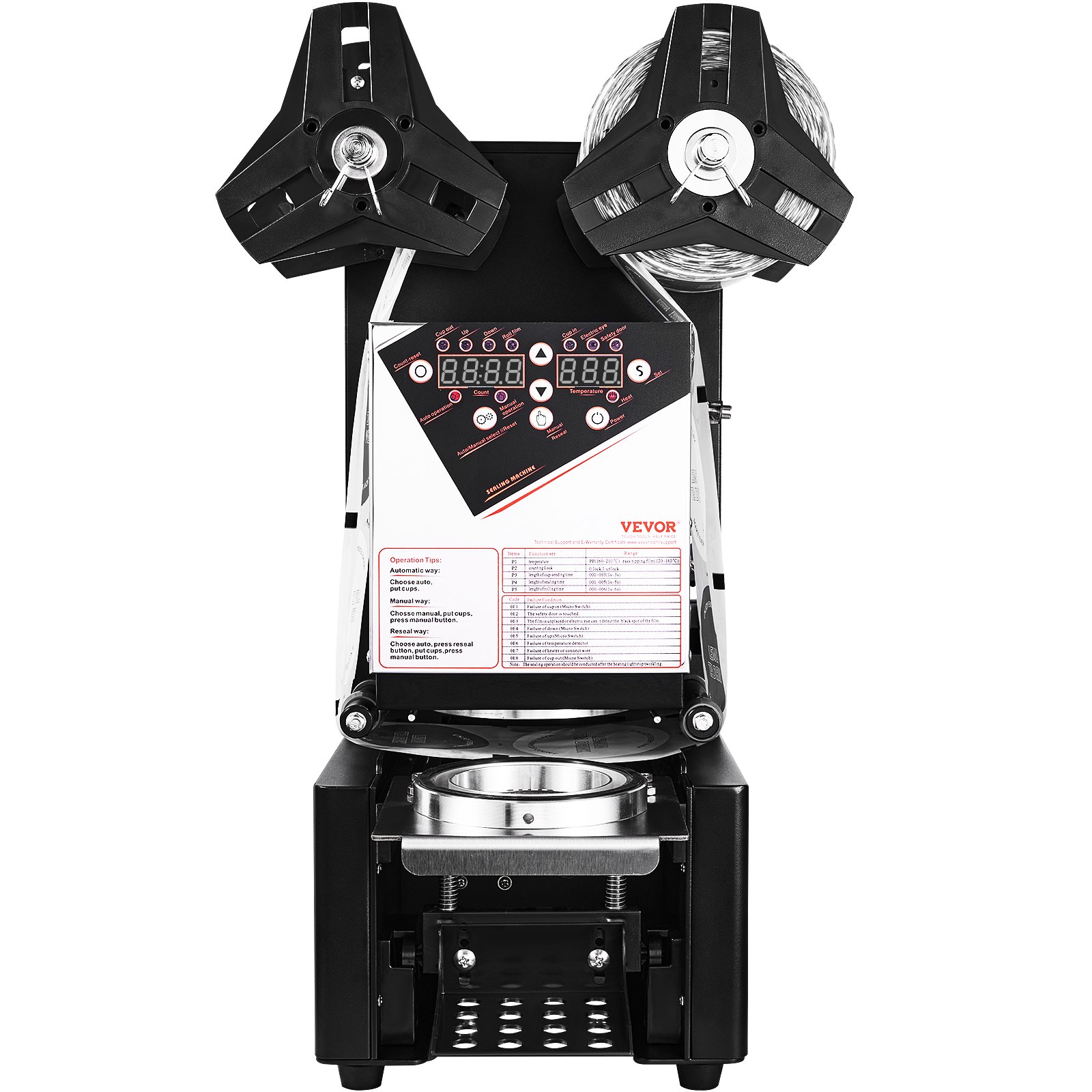 Electric cup sealer with digital LCD control, fits 90/95mm cups, seals 500-650 cups per hour, ideal for bubble tea and coffee.