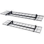Durable 4×1 ft wall-mounted garage shelves, 2 pack with 400 lbs total load capacity for organized storage in sheds, shops, and garages.