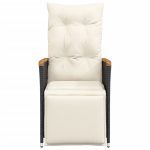 Durable adjustable garden chair with black poly rattan design and comfortable cushion for outdoor relaxation.