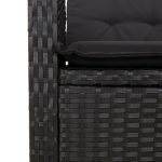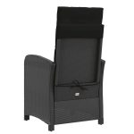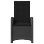 Durable black poly rattan garden chair featuring adjustable positions and a comfortable cushion for outdoor relaxation.
