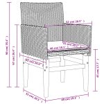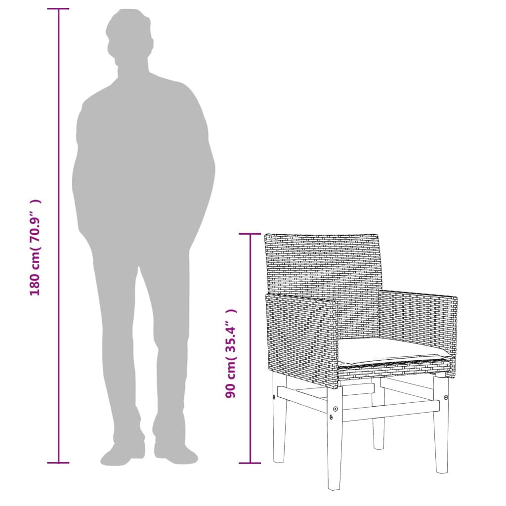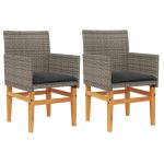Set of 2 grey poly rattan garden chairs featuring solid wood frames and comfortable cushions for outdoor relaxation.
