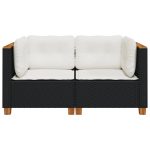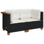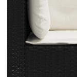 Set of 2 black poly rattan garden corner sofas featuring comfortable cushions for stylish and durable outdoor seating.