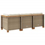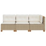 Durable beige 3-seater garden sofa made of poly rattan, complete with comfortable cushions for outdoor relaxation.