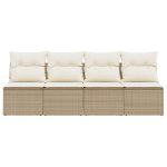 Garden Sofa with Cushions 4-Seater Beige Poly Rattan
