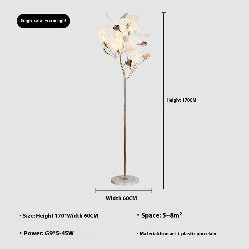 Elegant Ginkgo Leaf floor lamp enhances living room and bedroom ambiance with decorative lighting and unique design.